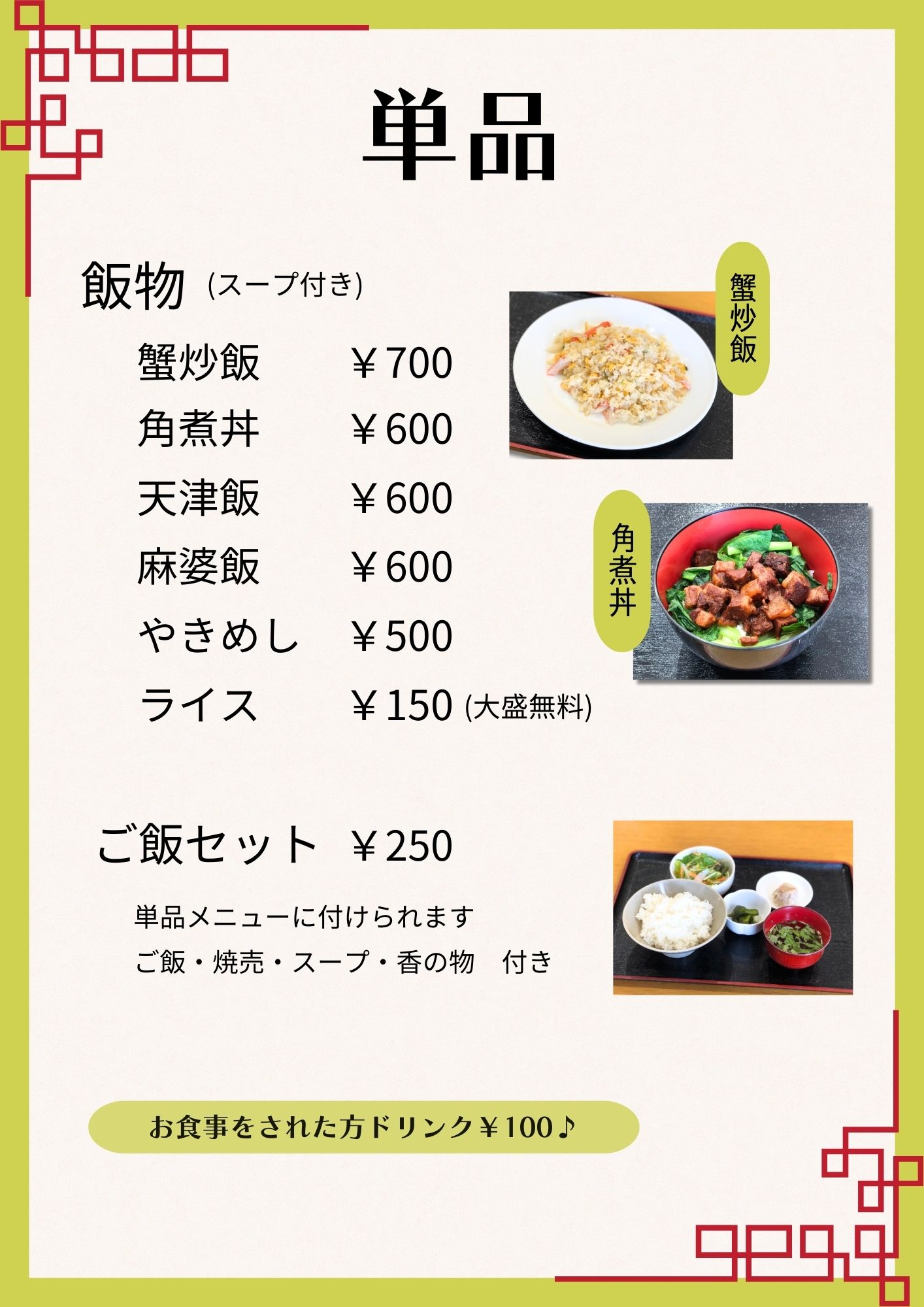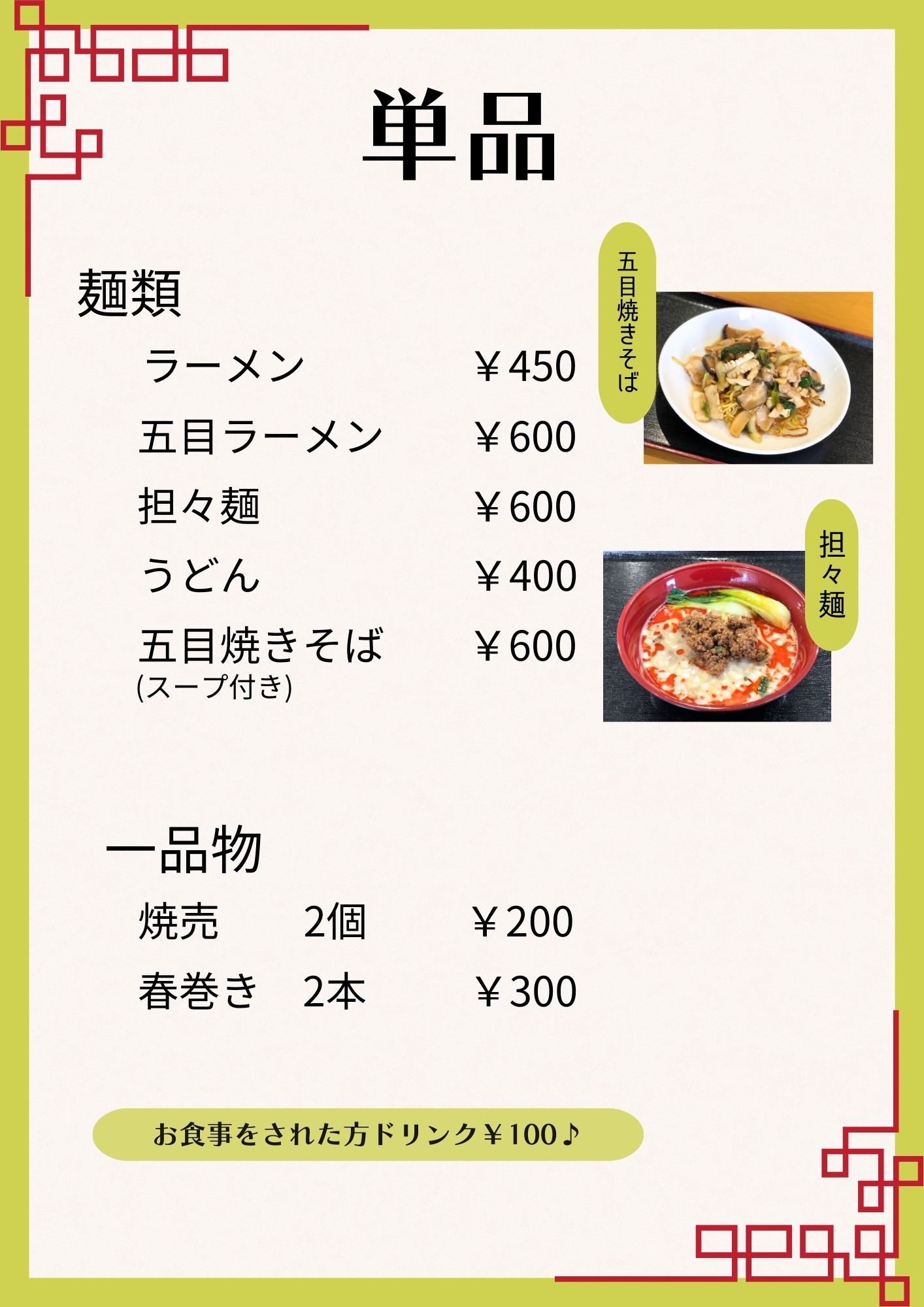 住 所 白山市木津町574番地1 地図 電話 076-220-6790 Fax 076-220-6790 営 業 日 月曜日・水曜日・木曜日・金曜日 定 休 日 火曜日・土曜日・日曜日・祝日 営業時間 11:00-15:00 ラストオーダー 14:30 メニュー ランチ ※ランチは週替わりです。 麺 類 ご飯類 ドリンク デザート ※2024/01/10にリニューアルオープンしました。 よろしくお願いいたします。